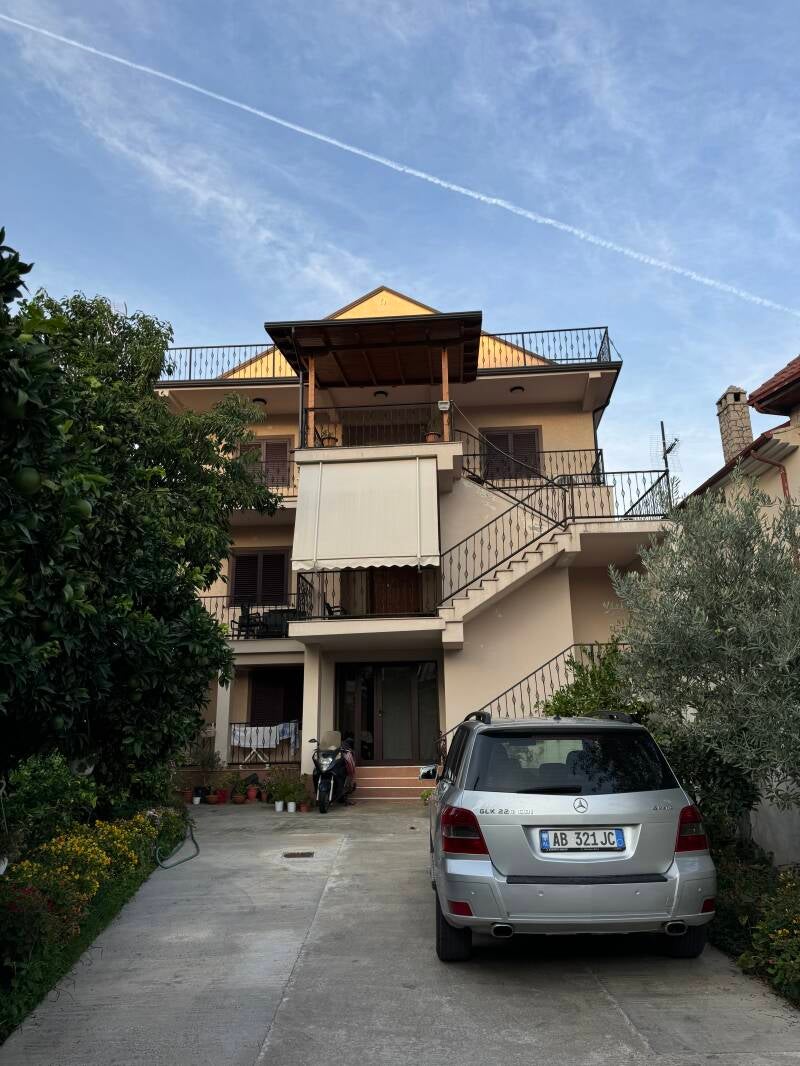 In Shkoder worden we opgewacht door onze gastheer van vandaag. We hebben een prachtig appartement midden in de stad met twee slaapkamers, een woonkamer, een keuken en een badkamer. En dat voor een zeer schappelijke prijs. De hele middelste etage op de foto hieronder.