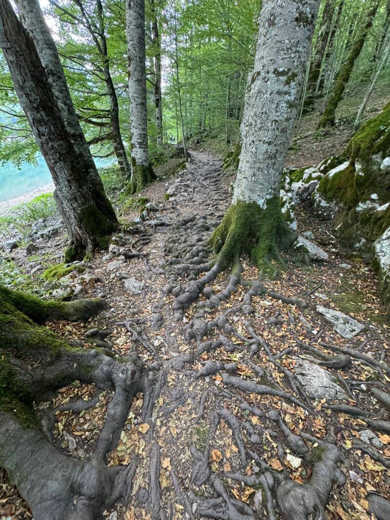 De omgeving is schitterend en het paadje dat langs het meer en door het bos leidt is werkelijk prachtig. Mooi om te zien hoe eigenlijk de boomwortels in de jaren het pad hebben gevormd.