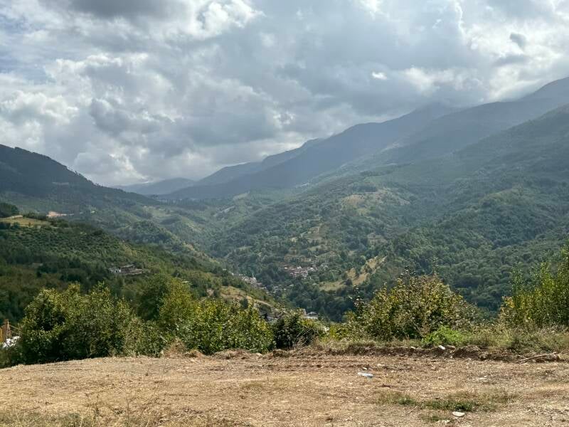 Na het ontbijt de boel weer ingepakt en de motor gestart voor de volgende trip. De route naar Skopje is gelukkig niet ver (2 uur rijden). Het eerste deel gaan we door het nationale park Sharri Mountain waar bruine beren leven. Bij een mooi uitkijkpunt wil ik een foto maken en stap uit. Onder mij hoor ik geritsel en natuurlijk denk ik meteen aan de beer. Met de staart tussen de benen haast ik me weer naar de auto. Schijterd ben ik toch. Was mogelijk een egeltje of zo! Maar ik hoef het niet te weten.