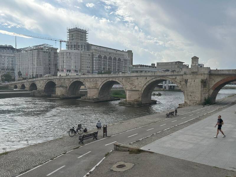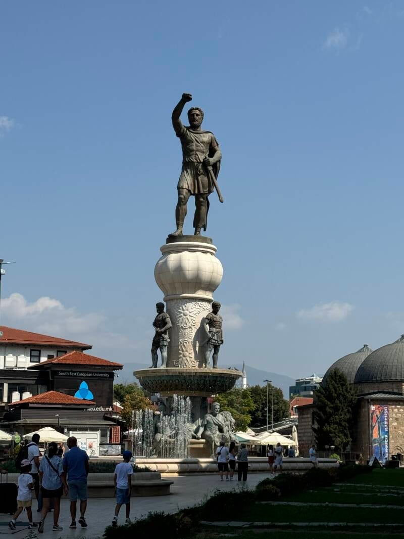 Ook komen we langs het gedenkhuis van Moeder Theresa en stoppen we bij het parlementsgebouw. Hier vertelt Dino over de nog steeds aanwezig corruptie en witwaspraktijken in Noord-Macedonië (overigens noemt hij het steevast Macedonië). Ook passeren we de 'Arc de Triomphe' van Skopje die toch aardig lijkt op die in Parijs, alleen dan de Madurodamversie. En als tekst staat er toch echt Macedonië en niet Noord-Macedonië 😏