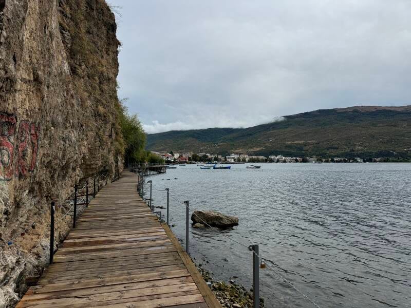 We besluiten dat we niet van ongebrande suiker zijn (het soort wat makkelijk smelt) en maken ons gereed om te vertrekken. Voor de zekerheid maar de wandelschoenen aan want de straten/paadjes zouden wel eens glad kunnen zijn/worden. We volgen de route en zien al snel het eerste mooie uitzicht. De bijbehorende kerk is nog dicht dus we lopen verder naar beneden door echt prachtige authentieke straatjes/paadjes richting het water. Ook horen we steeds meer Nederlanders om ons heen. Na 14 dagen Balkan valt het gewoon op, tot nu toe kwamen we amper Nederlanders tegen.