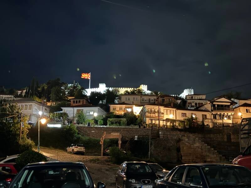 Na dit waterdorpje kachelen we nog even verder langs het meer. We zijn op weg naar Sveti Naum (Heilig Naum) waar een kerkje staat. Als we hier de oprijlaan oprijden ziet het er perfect onderhouden uit. Mooi groen, goed onderhouden en echt prachtig. Om te parkeren moeten we... inderdaad weer betalen.