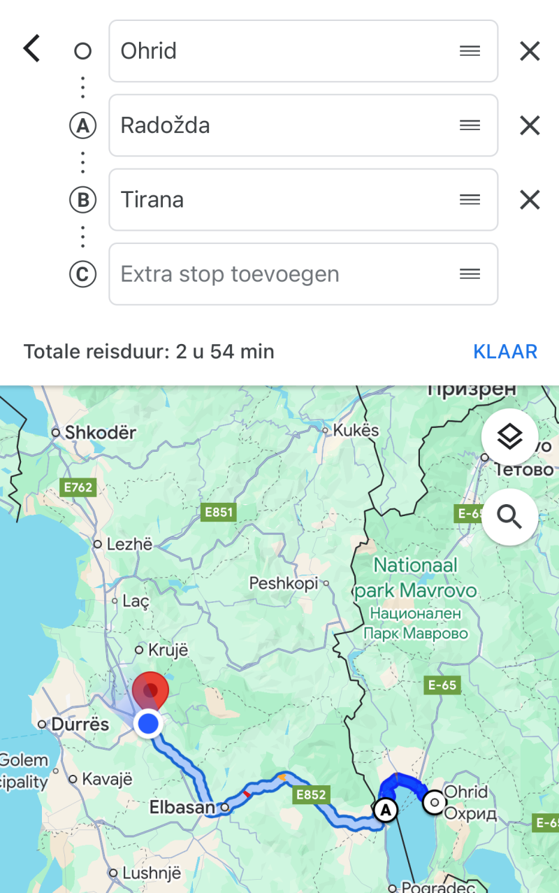 Wat vliegt de tijd! Vandaag verplaatsen we ons voor de laatste keer naar een nieuw onderkomen, in de stad waar onze rondreis is begonnen, Tirana. Gelukkig konden we vannacht weer water krijgen en dat merkten we! Het toilet liep namelijk vanaf 01.00u continu door. 🤷♀️ We hebben het in Nederland in de regel toch een tikkie beter voor elkaar.