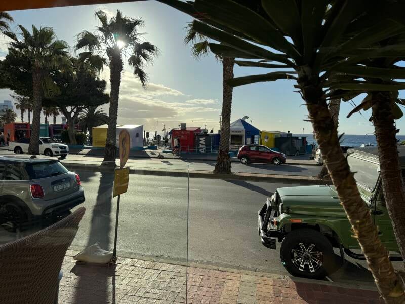 ’s Avonds eten we bij Grand Pavilion, 750 meter verderop. Alleen: het ligt heuvelafwaarts. Prima bij de heenweg, minder bij de terugweg. Na twee Aperol Spritz verklaart Renate de strijd met de helling verloren. We nemen een Uber voor €2,40. De chauffeur heet Israël (“Lastige naam tegenwoordig,” grapt hij zelf) en rijdt ons soepel terug omhoog. BAM, 5 sterren verdiend voor Israël.