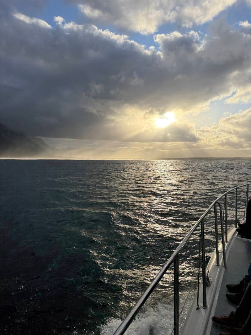 Terug in het guesthouse tik ik dit verslag, terwijl Renate relaxt. Een lange dag vol walvissen, pinguïns, Aperol en zeeziekte — kortom: weer een topdag in Zuid-Afrika!