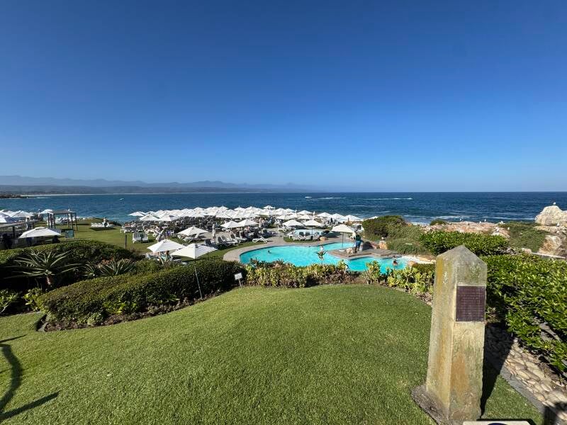 Vandaag rijden we over de beroemde Tuinroute richting Plettenbergbaai. De naam belooft idyllisch groen, kronkelende wegen en fotogenieke uitzichten. En dat is het ook... alleen rijden wij 120 km/u en flitsen overal langs. Zuid-Afrikanen vinden het zelf heel gewoon om op de vluchtstrook even stil te staan of er te wandelen, wij durven het niet aan. We zien in een flits de contouren van kloven en bergen — wel gezien dus, maar niet vastgelegd. Hopelijk lukt dat de komende dagen nog.