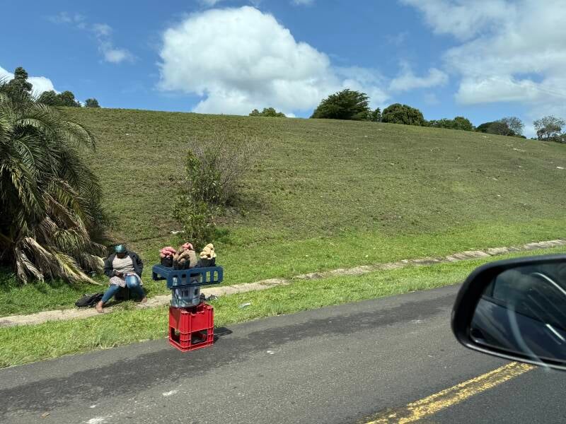 Onderweg verbazen we ons weer over de vele kraampjes die gewoon naast de snelweg staan waar vaak hetzelfde wordt verkocht. Soms 10 kraampjes op een rij met allemaal bananen of houtsnijwerk. En het verkeer raast voorbij met 120 km/u. Misschien hebben ze hier nog niet van marketing gehoord. En ach, waarom zou je als wandelaar ook niet gewoon langs de snelweg lopen om van A naar B te komen?