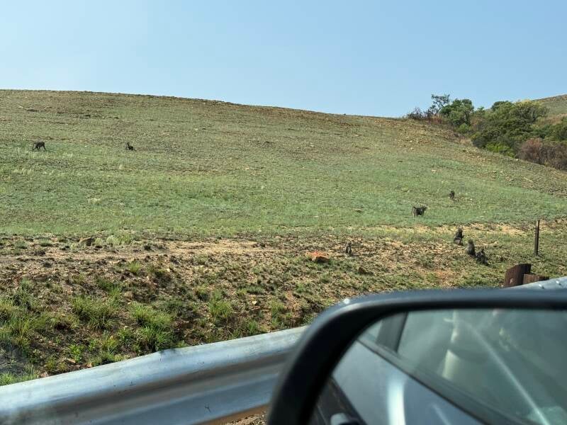 En dan bijna bij de Long Tom Pass: die ons prachtige uitzichten belooft met een route die elke bocht een nieuwe ansichtkaart oplevert. Zelfs een paar apen langs en op de weg maken hun opwachting.