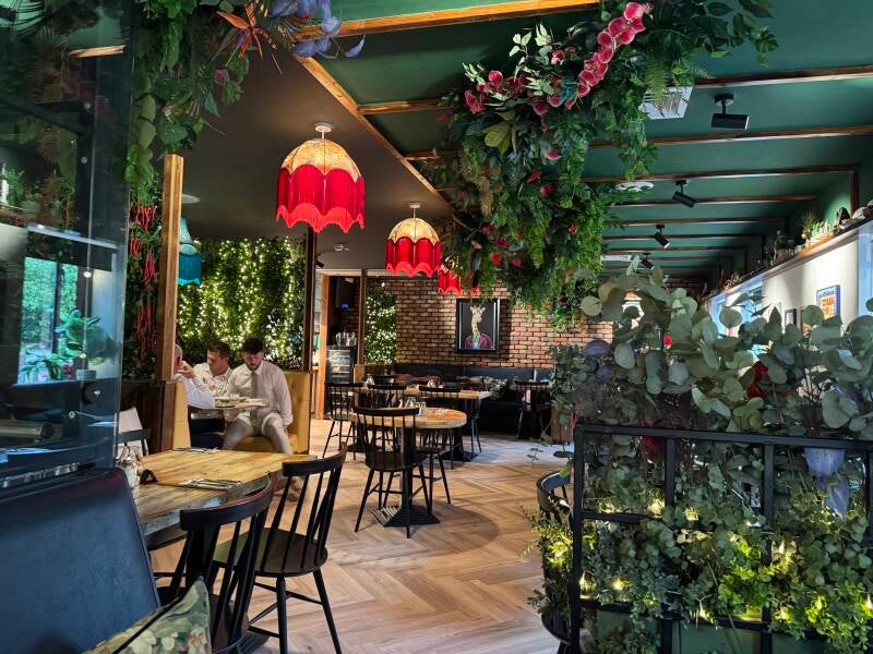 Ons restaurant van vanavond is de Teal Monkey en dat is een echt leuk tentje. We krijgen een prachtig tafel toegewezen en genieten van een heerlijk maaltijd. Renate gaat aan de French Martini’s — twee stuks, zichtbaar genieten. En ja, vaste prik: als zij cocktailt, wil ik een Piña Colada. Google weet raad. Revolución de Cuba klinkt als dé plek voor tropische drankjes.