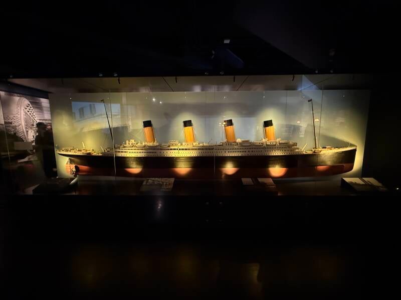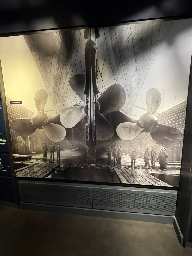 De ochtend begon best vroeg. Om 7.00 uur ging de wekker. Ontbijten, inpakken, opruimen, afwasje doen, vuilnis wegbrengen — het hele ochtendritueel in sneltreinvaart. Daarna mocht ik in alle luxe afgezet worden bij het Titanic Museum. Handig detail: daar kun je je koffers in een kluis stoppen. Ondertussen ging Harold tanken en de huurauto terugbrengen. Knieperds als we zijn (maar alleen als het ons uitkomt), hadden we een ‘early bird’ ticket gescoord. Toegang om 9.30 uur, scheelde toch mooi 5 pond per persoon. En Harold, militair getraind als altijd, stond zelfs ruim op tijd voor de deur. Ik zat toen al relaxed binnen, met een decaf latte in de ene hand en een puzzeltje op de iPad. Vakantie op z'n best.