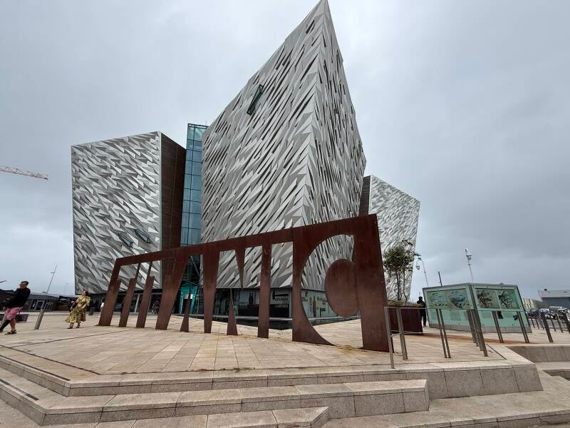 Aan de foto kun je overigens zien dat het een heel imposant gebouw is. We gaan naar binnen, en jawel: mensen. Véél mensen. En vooral véél informatie. Het museum begint met de industriële revolutie van Ierland, waarna je alles tot in de kleinste details leert over de bouw van de Titanic. Elk boutje, elk klinknageltje, niets blijft onbesproken. Daarna loop je door nagebouwde delen van het schip en wordt het wel duidelijk: voor die tijd was dit écht een knap staaltje scheepsbouw. Oké, het zinken was minder geslaagd, maar hé, details. Het heeft er wel voor gezorgd, zo'n zinkende boot dat Belfast een geweldige toeristenattractie rijker is. Tja, de een zijn dood....