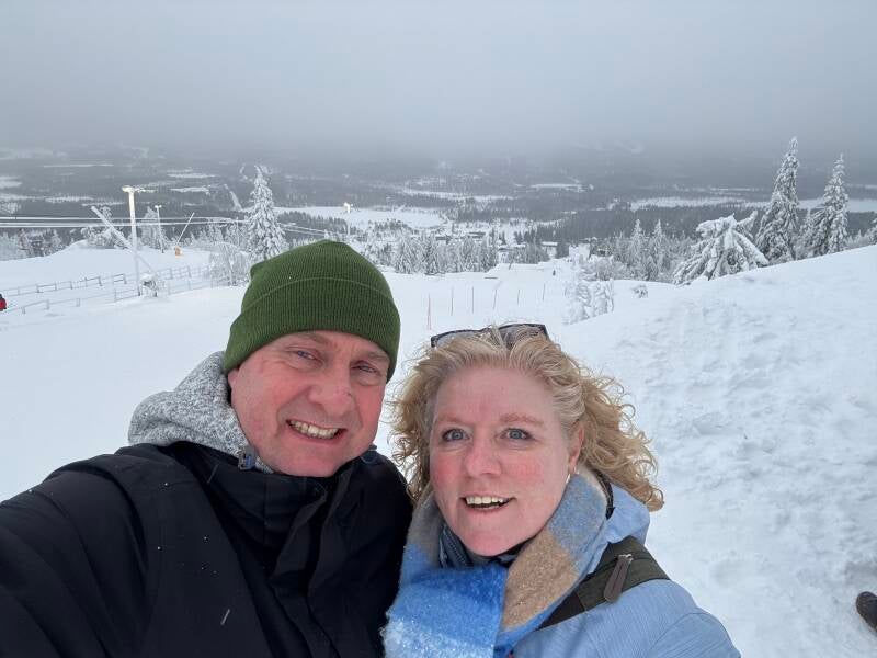 Voordat we instappen, maken we een eerste selfie! En zoals jullie kunnen zien is het afvallen (een van mijn doelen als pensionado) nog niet echt gelukt.