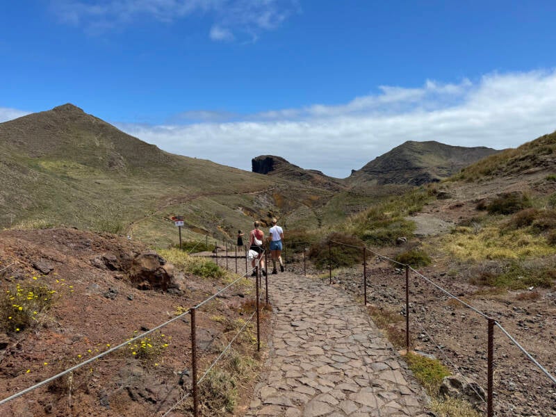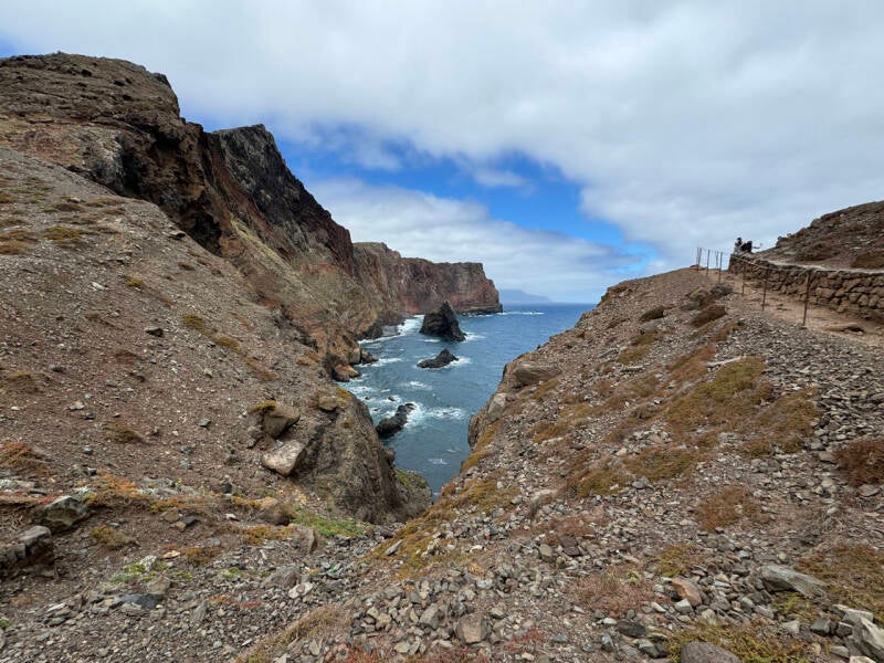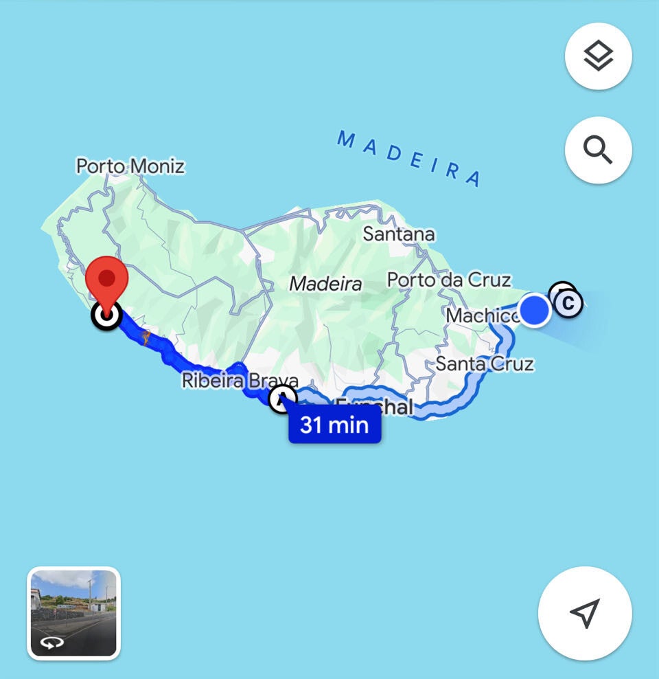 En door, voor een laatste wandeling door het schone ruige landschap van Madeira, helemaal in het verste oosterse bergachtige puntje van het eiland. En op weg er naartoe krijgen we zowaar regen… ja, regen!!!! Be-lach-e-lijk! We duiken menig tunnel in en smeken de weergoden om in ieder geval droog weer. En telkens als we uit de tunnel komen, is het weer nat, nat en nat. Maar, na de laatste tunnel schijnt inene weer de zon! Wel heeft de regen plaatsgemaakt voor een heul stevige (maar niet koude) wind. We wandelen een uurtje rond bij Ponta de Sao Lourenço. Onze blote huid wordt gezandstraald door de harde wind en we waaien nog net niet van de berg af. Monique haakt op enig moment af, ze heeft nog een online meeting voor haar werk.. 🤷🏼♀️. En ik hobbel nog wat verder. Echt mooie ruige rotsen! Daarna is het toch echt klaar. Terwijl ik dit typ, zitten we te lunchen in het pittoreske Canical.